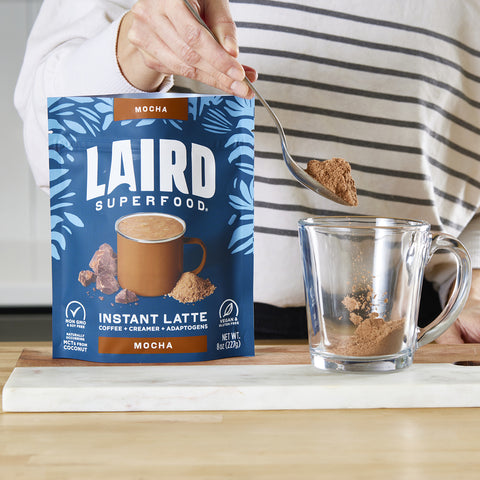 Ready for a superfood latte whenever and wherever you want it? Mocha Instant Latte is made for you! Whether you’re looking for a delicious experience in the kitchen or you’re entirely off the grid, you no longer need a coffee shop (or even a coffee pot!) to get a boost of functional fuel.
