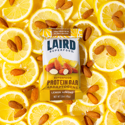 Laird and Gabby know that the key to helping the world eat more energizing superfoods is to make products that taste great. That’s the inspiration behind this citrus-and-nut fueled Lemon Almond Protein Bar. We’ve managed to pack 10 grams of protein from plants and seeds, 6 grams of fiber, and our functional mushrooms into a smooth bar that is packed with epic flavor.