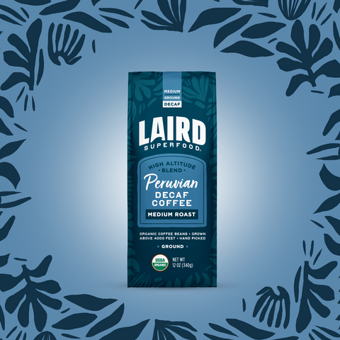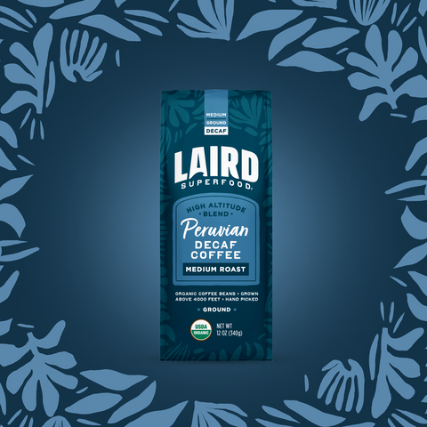 Laird Superfood Decaf Coffee is decaffeinated using a chemical-free Swiss Water® Process. Our Swiss Water® Process uses pure water, so it's environmentally friendly, chemical-free, and still removes 99.9% of caffeine.
