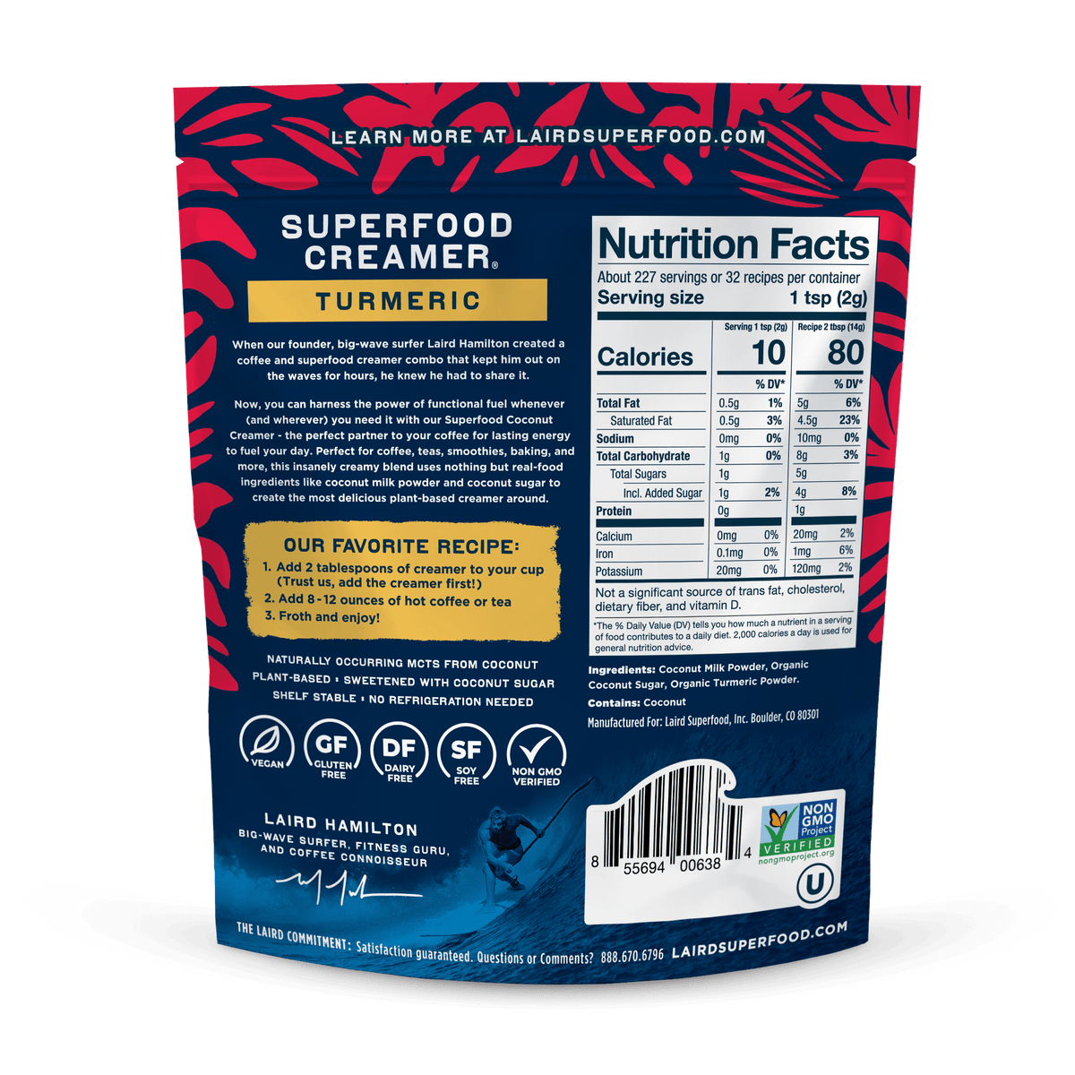 The best way to savor the delicious flavor of turmeric is with our Turmeric Superfood Creamer! Our creamers are crafted from the highest quality all-natural real food ingredients. We source our ingredients responsibly, and test every product thoroughly to ensure that you're incorporating the cleanest, finest fuel into your routine.
